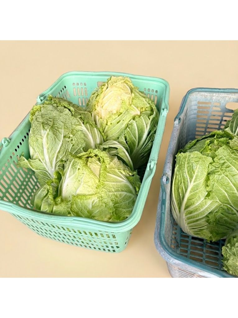 今並んでいる白菜は、まさに**「名残の白菜」**。 一年中でもっとも寒さが厳しい時期を乗り越えてきたので、繊維の奥まで甘みが詰まっています。