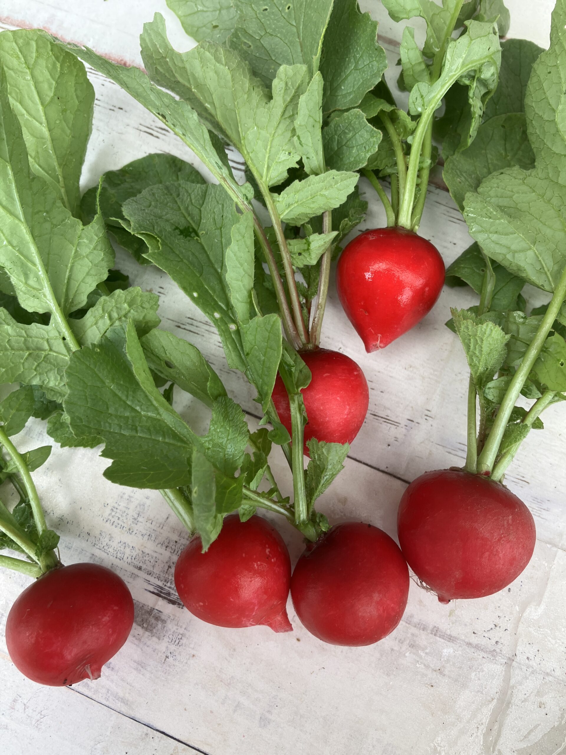そしてもう一つ、スーパーのラディッシュと違うのが**「新鮮な葉っぱがついていること」**。