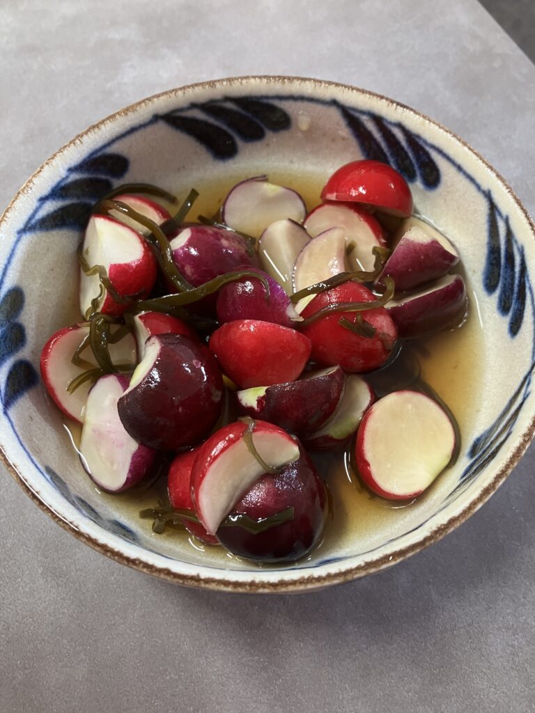 ラディッシュの少しピリッとした辛味が、白だしの旨味でマイルドになって、箸が止まらなくなります。