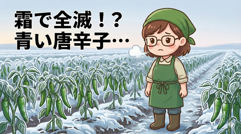 でも、自然は待ってくれませんでした。 収穫しようとした矢先、強い霜(しも)が降りてしまい、畑の唐辛子たちは寒さに耐えきれず、一晩でダメになってしまったのです。