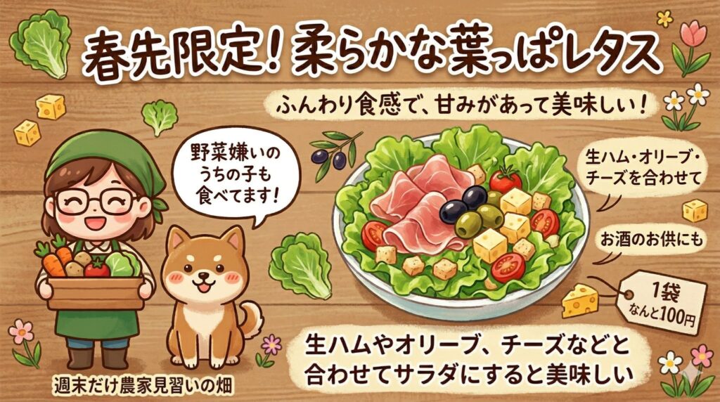 実はそれと全く同じで、春にぐんぐん成長する「春レタス」も、葉が薄くてとーっても柔らかく、サラダにすると最高に美味しいんです!