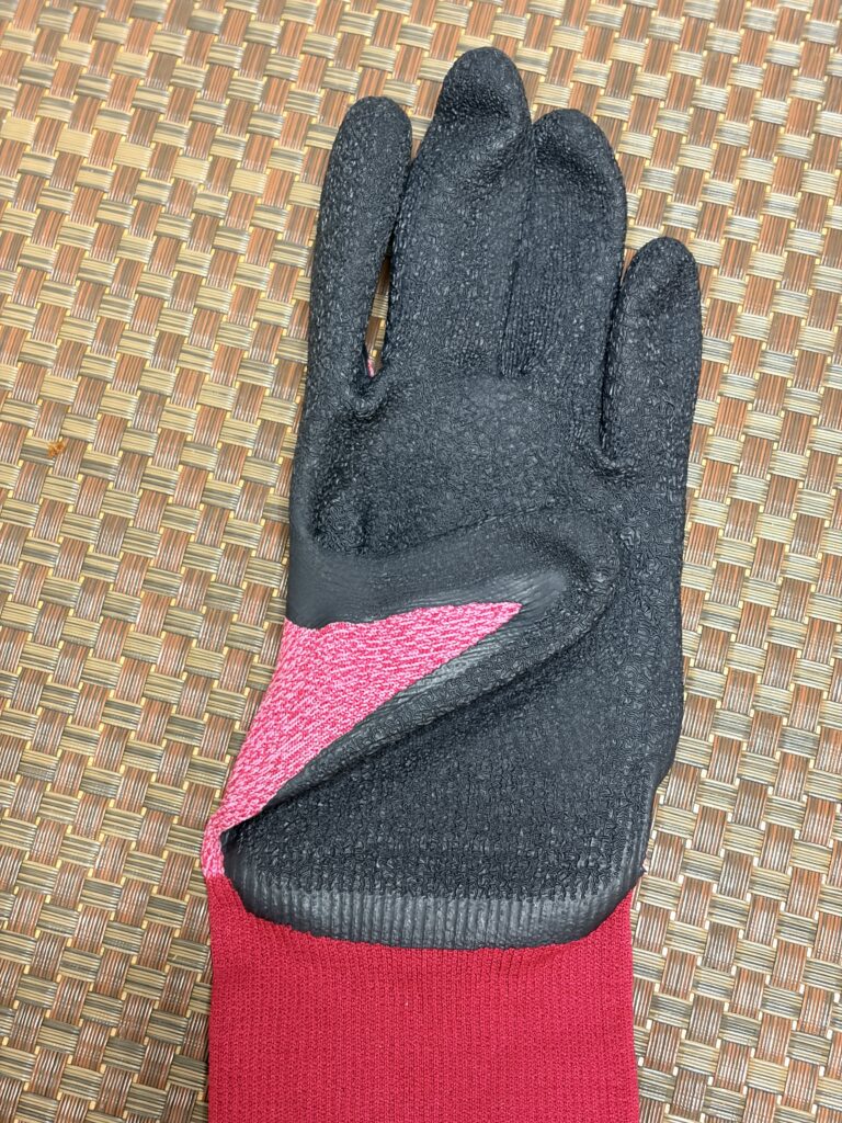 でも、その全面ゴム手袋のまま畑に出て体を動かすと、手袋の中がサウナ状態になり、あっという間に**「汗だく」**になってしまいます。外した時に手がふやけてしまったりして、長時間の作業には耐えられません。