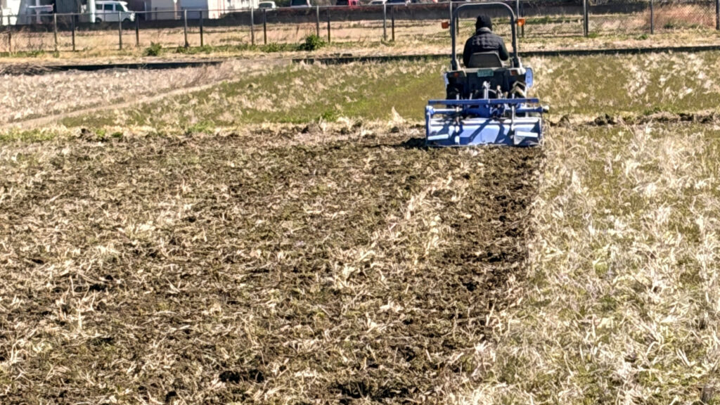 「田おこし」とは、トラクターを使って田んぼの土を深く掘り起こし、細かく砕いていく作業のことです。 これをやると、土の中に新鮮な空気がたっぷり入り、美味しいお米を育てるための「栄養」に変わってくれます。