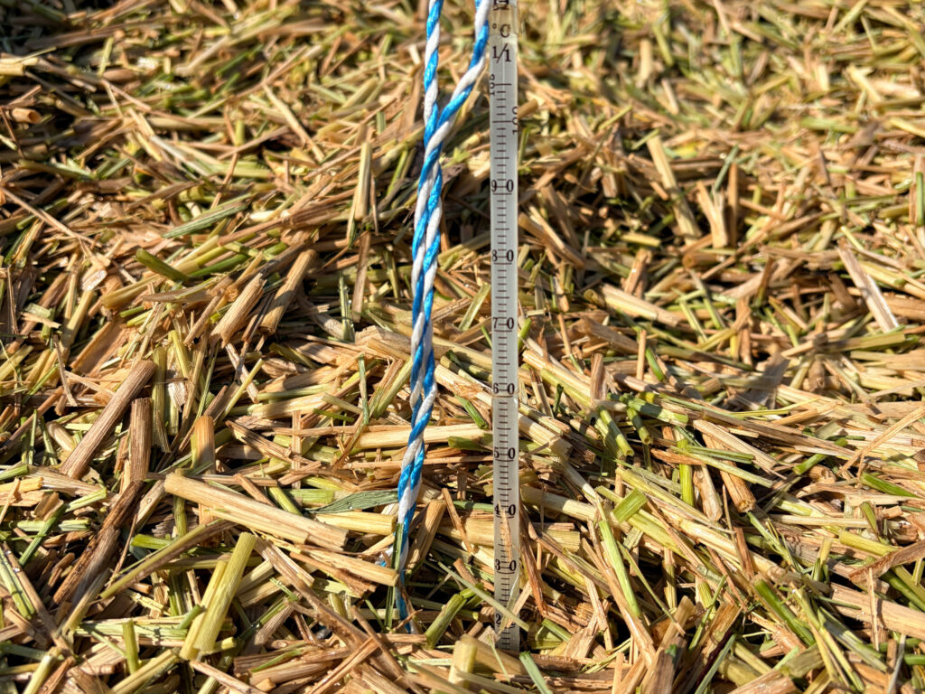 腐葉土の上から、細かく破砕した「稲藁(いなわら)」をフカフカに敷き詰めます。
