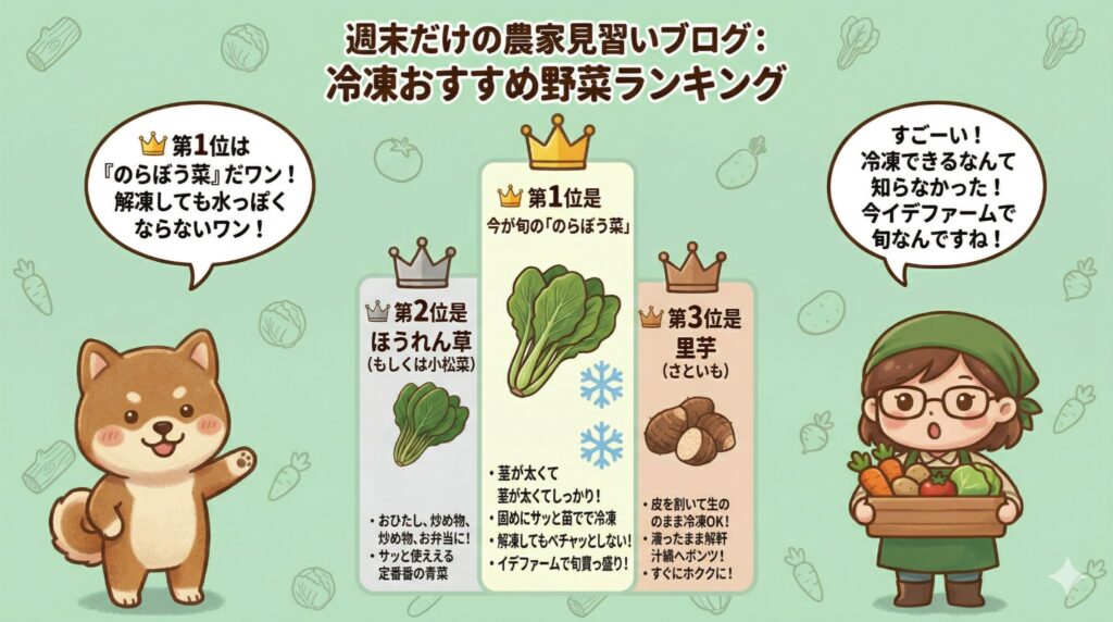 第1位は、まさに今イデファームで旬真っ盛りの**「のらぼう菜」**です!