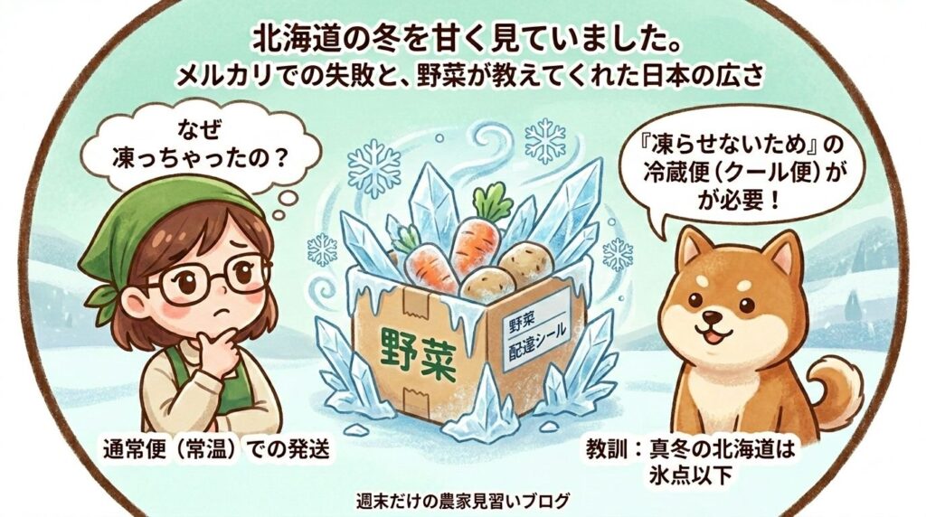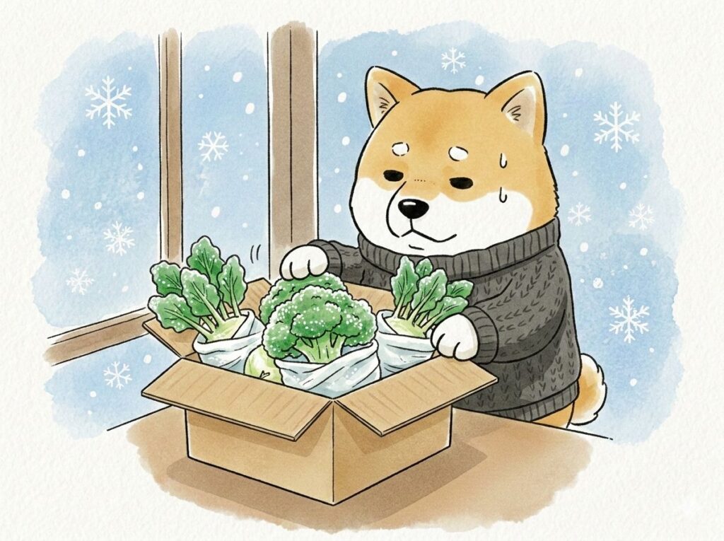 数日後、お客様からご連絡がありました。 なんと、輸送中に寒さで野菜が完全に凍ってしまい、届いた時にはすべてダメになってしまっていたのです。